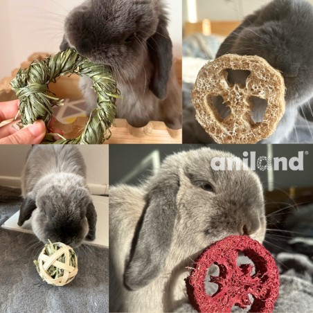 Přírodní hračky a okusovadla by měly být součástí obydlí každého králíčka a hlodavce. Díky nim totiž dochází k broušení zoubků, příjmu vitamínů z kúry i vlákniny ze senných hraček, která je pro jejich trávení tolik důležitá.