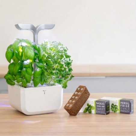 V balení nájdete 2 prírodné bylinkové náplne (petržlen kučeravá, bazalka), takže môžete začať okamžite. Elegantný dizajn navyše skvele zapadne do každej modernej kuchyne.