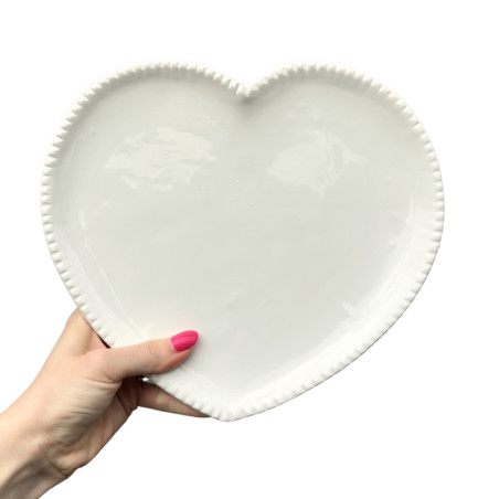 Keramický biely tanier v tvare srdca (25 × 20 cm) je štýlový a praktický doplnok nielen pre domácnosť, ale aj pre chovateľov králikov a morčiat.