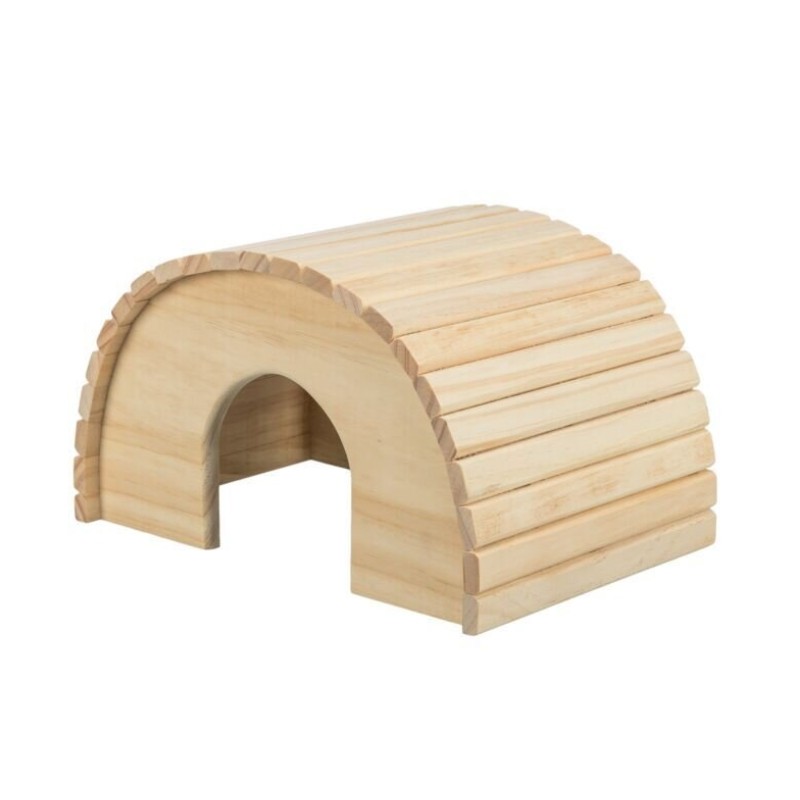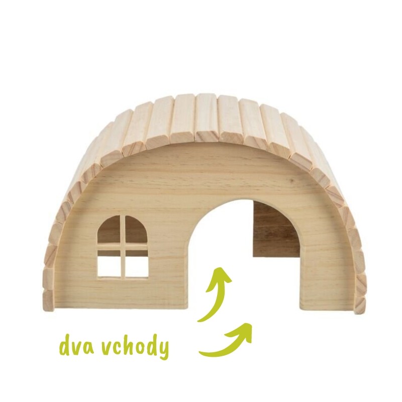 Drevený domček s guľatou strechou zaistí pocit bezpečia, prítmie i pohodlia všetkým morčiatkom.