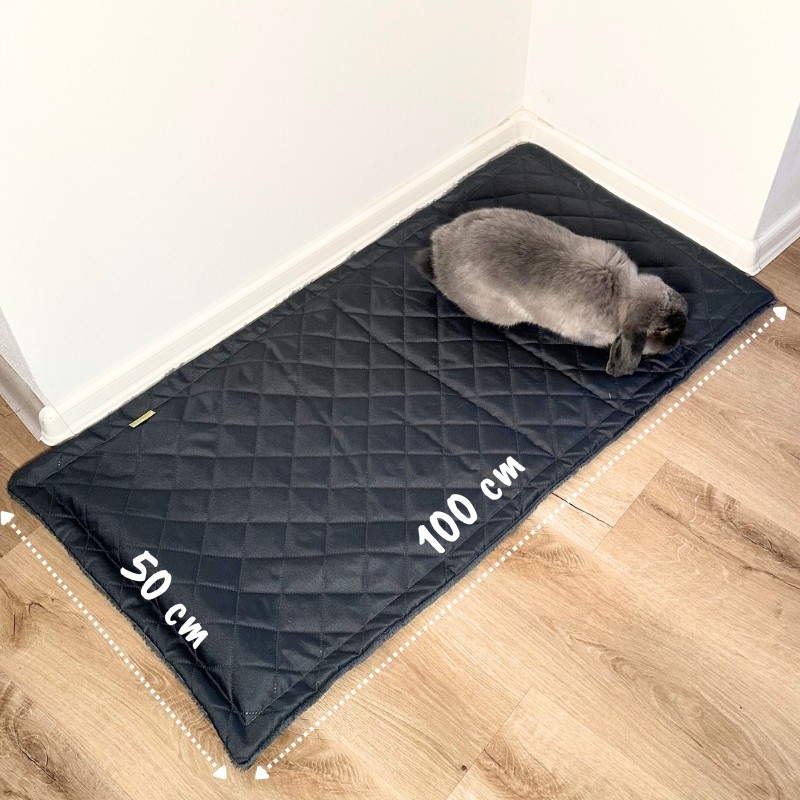 Špeciálna podložka BUNNYMAT M 100x50 cm je ideálnou podlahou pod králiky, morčatá, ale aj psy a ďalších miláčikov. Z jednej strany poskytuje príjemné teplo a mäkké pohodlie, z tej druhej je mäkká, ale zároveň vodeodolná*. Tým pomáha chrániť Vašu podlahu, posteľ, gauč alebo auto pred nečistotami.