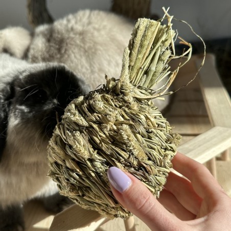 Ponúknite svojmu miláčikovi zdravú hryzaciu hračku, ktorú môžu celú zjesť! Timotejský ananas skvele zaháňa nudu aj hlad, je bohatý na timotejské seno a vlákninu.