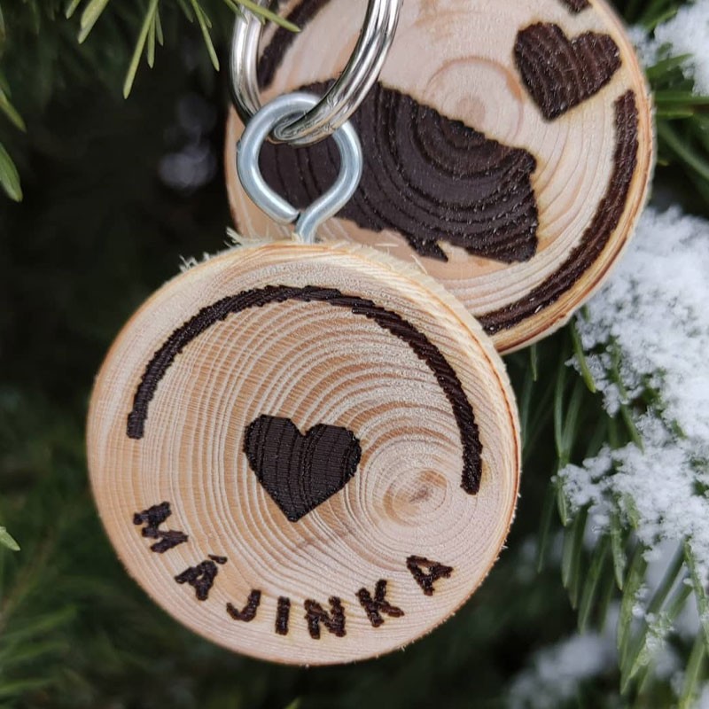 Dřevěný přívěšek s obrázkem KOČKY o průměru 35mm, na kovovém kroužku pro připnutí na klec či klíče. Vhodný dárek ať už pro zvířecí nebo lidské miláčky. Každý kus je originál a může se lišit ve struktuře dřeva. Z druhé strany Vám vypálíme jméno dle Vašeho přání - vepište jej do políčka níže.