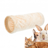 Béžový plyšový tunel s vyšitou tlapkou je vhodný pro králíky, kočky či drobné pejsky.